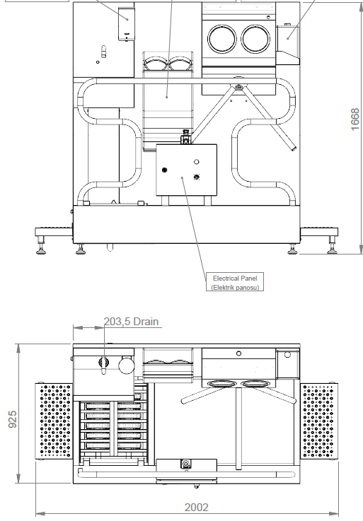 Uzunluk 2002 mm / Genislik 925 mm / Yükseklik 1688 mm |