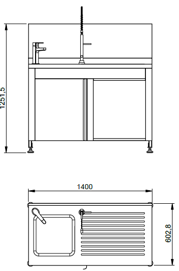 Uzunluk 1400 mm / Genislik 602 mm / Yükseklik 1251,5 mm |