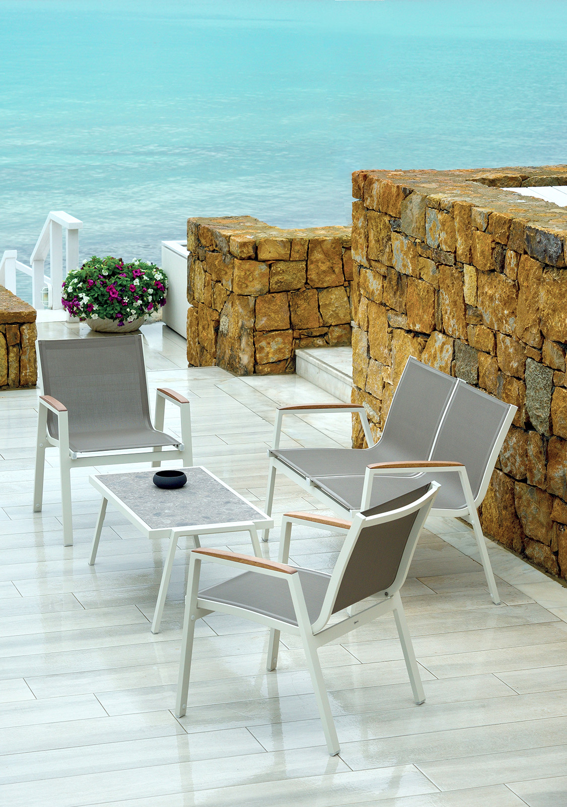 Amelia, markanın temel koleksiyonlarından biri olmaya devam ediyor ve çeşitli ortamlarda denenmiş ve test edilmiş olup, 5 yıldızlı bir otelden deniz manzaralı bir kafeye kadar her türlü dış mekan için uygunluğunu kanıtlamıştır.